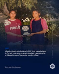 Sgt. Sarbjit Kaur Sangha’s journey is one of determination, resilience, and service. After immigrating to Canada in 1997 from a small village in Punjab, India, she remained steadfast in pursuing her childhood dream of becoming a police officer. Her inspiration