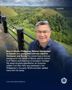 Born in Manila, Philippines, Winston immigrated to Canada as a young child and was raised in Vancouver and Surrey. He comes from a diverse background—his father is Filipino, and his mother is of Filipino and American (Caucasian) heritage. His maternal great-grandfather, an American soldier from New York, was stationed in the Philippines in the early 1900s and later settled there with his family.
